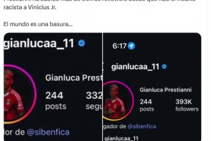 普雷斯蒂亚尼疑似对维尼修斯种族歧视后,他的粉丝数量暴涨6万多