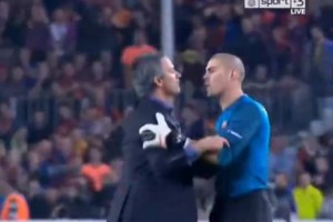 欧冠名场面:穆里尼奥双手指天征服诺坎普,遭到巴尔德斯阻拦