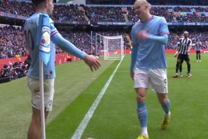 曼城大战纽卡名场面:哈兰德对纽卡连续刷角球😂