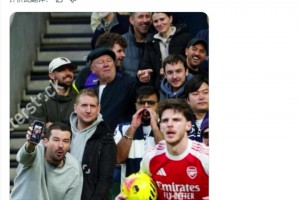 国外博主:热刺球迷用赖斯妻子的照片来嘲讽😡