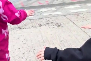 球迷小朋友在库尼亚车前跳起他的庆祝舞蹈,逗得库尼亚忍俊不禁