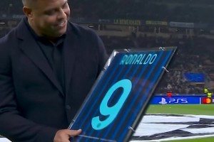 欧冠官方发布大罗、维埃里现场观战国米VS博德闪耀,获赠纪念球衣