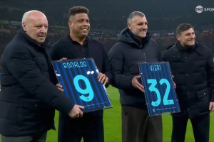 当年蓝黑军团的梦幻组合!大罗、维埃里现场观战国米欧冠比赛!