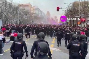 一片混乱!本菲卡球迷赛前与伯纳乌球场的警察发生冲突