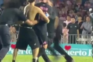 保镖德保罗失业😂!梅西被球迷“抱摔”,德保罗站在一旁