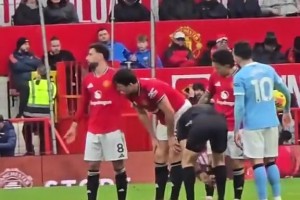 英雄惜英雄!赛场小瞬间:友好互动的哈兰德和B费!