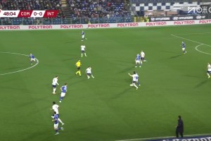 国米门前风声鹤唳!沃伊沃达扣倒阿切尔比射门擦柱而出!
