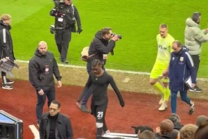 赛后穆西亚拉找奥利塞合影时遭怒送中指🤣