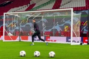 门将教练总是瞄准诺伊尔头部,没有软弱无力的射门,全是势大力沉