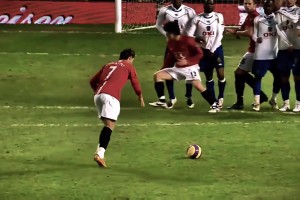 绝对十分角!当年C罗在曼联这记任意球,世界上可能没人能扑出来