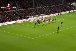切尔西1-2再次落后!加纳乔头球解围不远,道尔跟进打门边线破门