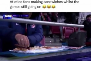 上半场4-1领先,马竞球迷在看台做起了三明治😅