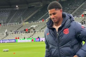 对阵纽卡赛前,拉什福德与韦恩·鲁尼握手致意❤️