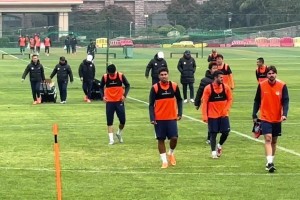 记者牛志明:高准翼回来了,没有佩戴任何护具,外援都参加了训练