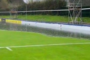 活久见🤣!西班牙低级别比赛一球场被淹,鸭子游泳进场