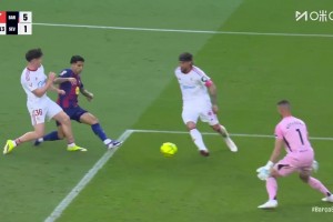 个人能力!坎塞洛长途奔袭破门,巴萨5-1领先塞维利亚!