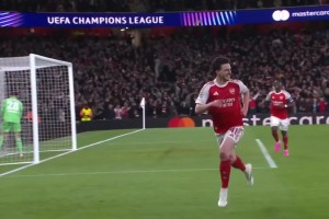 死角终结!赖斯断球推射破门滑跪庆祝!枪手总比分3-1药厂!