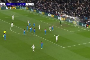 还差两球!哈维·西蒙斯造点亲自主罚破门,热刺总比分5-7马竞