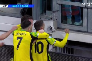 尤文防线被打穿!皮纳蒙蒂禁区内推射破门扳平!