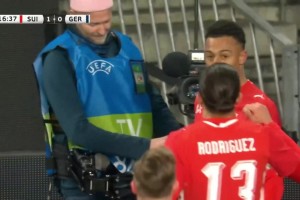德国中场传球被断!恩多耶禁区内晃开防守小角度劲射破门!