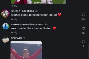 曼联球迷涌入托纳利的社媒,几千条评论邀请加盟曼联
