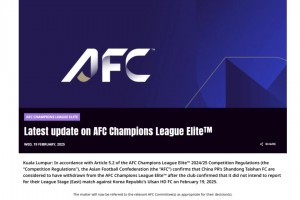 震惊!亚足联官方:泰山不参加对阵蔚山HD比赛,被视为退出亚冠