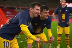 梅西才是真正的奖杯?巴萨夺国王杯那一刻,所有人排队和梅西合影