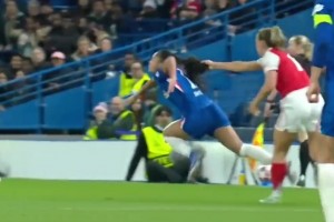 阿森纳女足拽切尔西球员辫子阻止反击,裁判无表示并蓝军教练黄牌
