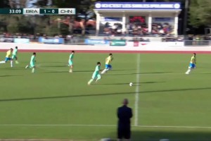 中国男足U16反击机会!李家进远距离吊射险些破门!