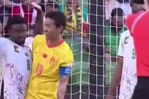 给韦世豪整笑了!喀麦隆球员贴身防守韦世豪,俩人都没绷住🤣