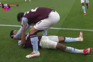 维拉半场2-1反超利物浦!沃特金斯头球破门激情滑跪庆祝!