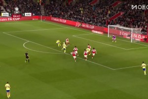枪手1-2再次落后圣徒!枪手左路被打穿!费洛斯助攻查尔斯破门!