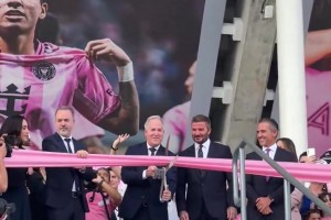 迈阿密国际总经理马斯兄弟与贝克汉姆一起剪彩,宣布新球场开幕!