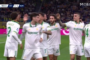 罗马1-1扳平国米!伦施下底传中助攻,曼奇尼门前包抄破门!