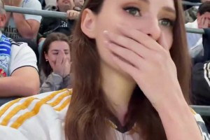 现场实拍维尼修斯错失大单刀,场边的美女球迷惊呆了😱