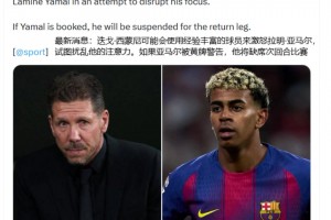 每日体育报:西蒙尼可能会安排球员去激怒亚马尔,后者将次回合停赛
