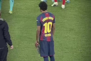 失望至极!亚马尔看到库巴西被罚下后的反应