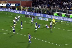 4球大逆转!邓弗里斯抽射破门双响滑跪庆祝!国米4-2领先科莫!
