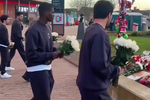 赛前的温情!大巴黎全队作客安菲尔德献花悼念若塔