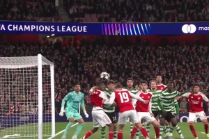可惜!道曼完美角球开出,特罗萨德无人盯防头球击中立柱!