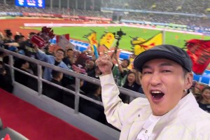 霸王来了👍!何润东观战苏超宿迁队比赛,和球迷合影