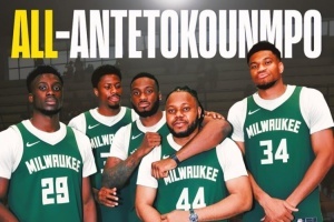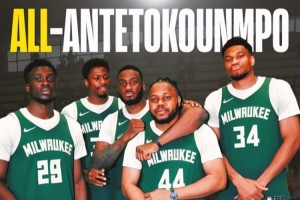 体育资讯10月15日讯近日,雄鹿签下了字母哥的弟弟亚历克斯-阿德托昆博,字母哥三兄弟共同效力雄鹿。美媒ClutchPoints晒出了一张全字母哥阵容的P图,并写道:“字母哥的另一位弟弟科斯塔斯目前效力于
