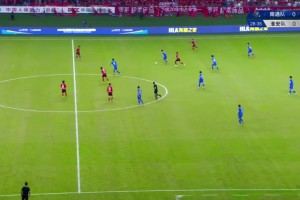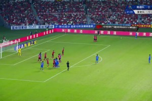 淮安队上半场险些扩大比分,定位球破门被吹越位