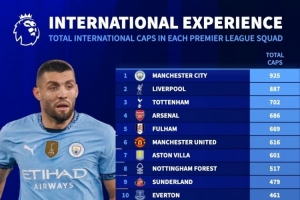 体育资讯11月1日讯德国转会市场统计了英超各队球员为国家队出战的场次,并列出榜单,曼城925场居首,利物浦887场次席。英超各队球员为国家队出战场次排名:曼城——925利物浦——887热刺——702阿森