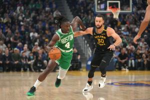体育资讯1月21日讯今早6点,勇士主场迎战凯尔特人。本场比赛追梦缺战,勇士赛前公布了本场比赛首发阵容:库里、施罗德、维金斯、佩顿二世、TJD。绿军首发为:塔图姆、杰伦-布朗、霍勒迪、怀特、波尔津吉斯。