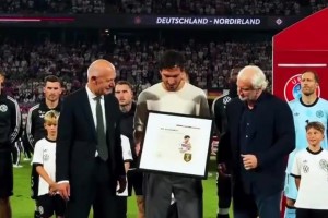 功成身退!赛前为胡梅尔斯在德国队作出的贡献进行表彰!