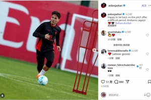 体育资讯10月31日讯米兰中场亚沙里更新社媒动态,晒出恢复训练的照片。亚沙里社媒晒出训练照片,并写道:“很高兴在度过一段艰难时期之后重返球场,加油兄弟们!”